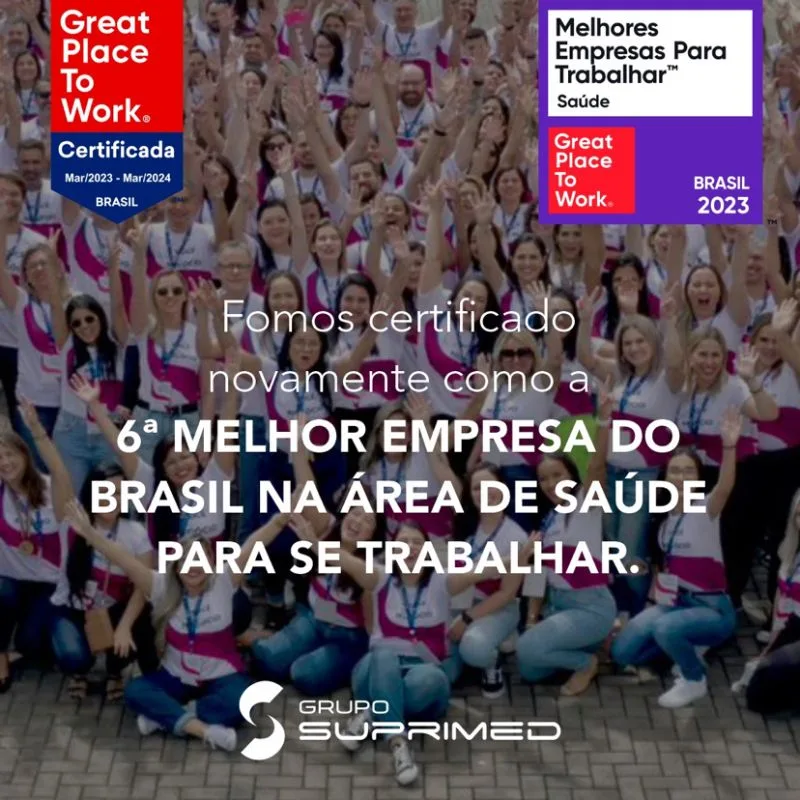 Recentemente, o @gruposuprimed recebeu a certificação GPTW, “Melhor Empresas para Trabalhar em 2023”.