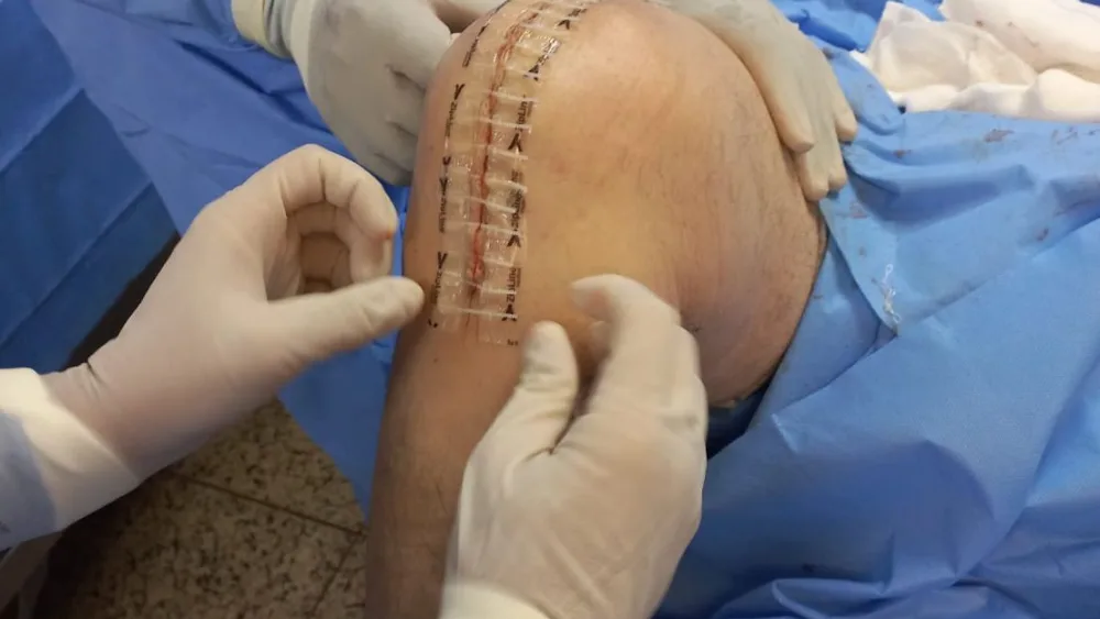 O ortopedista Dr. Marcelo Fraga utilizou o ZipLine (Modelo) 16 + 4cm, produto exclusivo do portfólio do Grupo Suprimed, para o fechamento da pele.